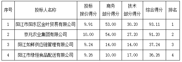 廣東業(yè)信采購招標有限公司受 陽江市陽東區(qū)華南師范大學附屬陽東小學 的委托,于2024年12月23日就 陽江市陽東區(qū)華南師范大學附屬陽東小學食堂大宗食材配送服務項目 (項目編號:YXCG-20241130)采用公開招標方式進行采購。現(xiàn)就本次采購的中標結果公告如下: