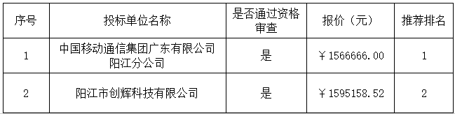 成交供應商名稱:中國移動通信集團廣東有限公司陽江分公司