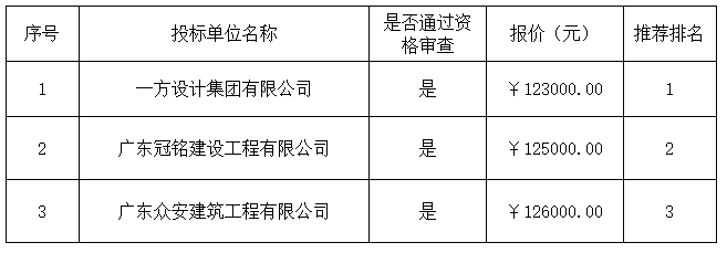 報(bào)價(jià)結(jié)果:最終詢價(jià)小組一致推薦一方設(shè)計(jì)集團(tuán)有限公司為成交單位,成交金額為人民幣123000.00元(大寫(xiě)金額:壹拾貳萬(wàn)叁仟元整)。