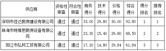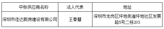 投標結(jié)果:最終評標委員會一致推薦 深圳市佳達廚房建設有限公司 為中標單位,中標金額為人民幣 216800.00 元,(大寫金額: 貳拾壹萬陸仟捌佰元整 )。