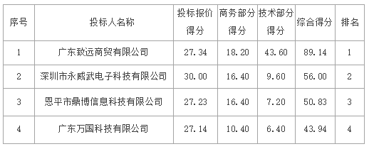 投標(biāo)結(jié)果:最終評標(biāo)委員會一致推薦 廣東致遠(yuǎn)商貿(mào)有限公司 為中標(biāo)單位,中標(biāo)金額為人民幣 693385.00 元,(大寫金額: 陸拾玖萬叁仟叁佰捌拾伍元整 )。