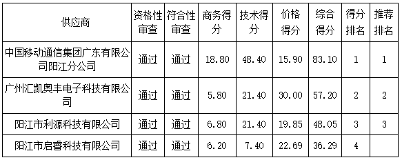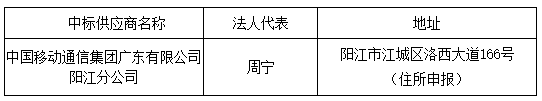 投標(biāo)結(jié)果:最終評(píng)標(biāo)委員會(huì)一致推薦 中國(guó)移動(dòng)通信集團(tuán)廣東有限公司陽(yáng)江分公司 為中標(biāo)單位,中標(biāo)金額為人民幣 787385.00 元,(大寫(xiě)金額: 柒拾捌萬(wàn)柒仟叁佰捌拾伍元整 )。