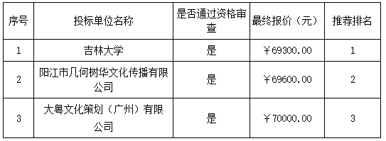 談判結(jié)果:最終談判小組一致推薦 吉林大學(xué) 為成交單位,成交金額為人民幣 69300.00 元(大寫金額: 陸萬玖仟叁佰元整 )。