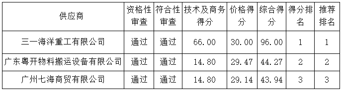 投標(biāo)結(jié)果:最終評標(biāo)委員會一致推薦三一海洋重工有限公司為中標(biāo)單位,中標(biāo)金額為人民幣2328000.00元,(大寫金額:貳佰叁拾貳萬捌仟元整)。