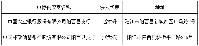 中國農業(yè)銀行股份有限公司陽西縣支行;