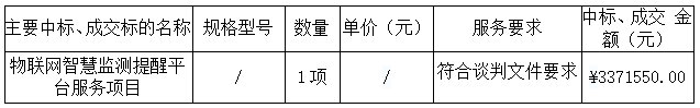 廣東業(yè)信招標(biāo)有限公司受廣東聚晨晉力通信設(shè)備科技有限公司的委托,于2023年11月28日就物聯(lián)網(wǎng)智慧監(jiān)測提醒平臺服務(wù)項(xiàng)目(項(xiàng)目編號:YXZB-20231120)進(jìn)行談判采購,現(xiàn)將本次采購結(jié)果公告如下: