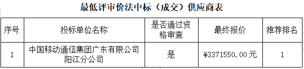 成交供應(yīng)商名稱:中國移動通信集團(tuán)廣東有限公司陽江分公司