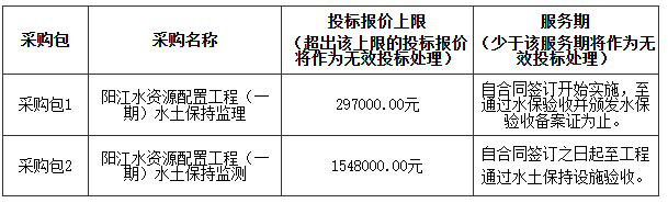 廣東業(yè)信采購招標(biāo)有限公司(以下簡稱“代理采購機(jī)構(gòu)”)受陽江市碧源水資源開發(fā)有限公司(以下簡稱“采購人”)的委托,就 陽江水資源配置工程(一期)水土保持監(jiān)理和監(jiān)測服務(wù)項(xiàng)目進(jìn)行公開招標(biāo) (項(xiàng)目編號:YXCG-20250814),歡迎符合條件的投標(biāo)人參加。有關(guān)事項(xiàng)如下: