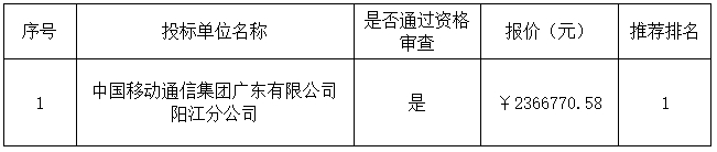 成交供應(yīng)商名稱:中國(guó)移動(dòng)通信集團(tuán)廣東有限公司陽(yáng)江分公司