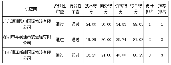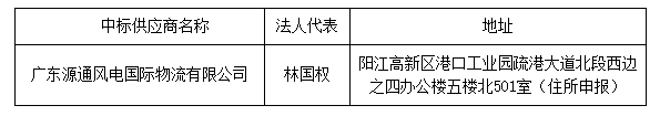 投標(biāo)結(jié)果:最終評標(biāo)委員會(huì)一致推薦 廣東源通風(fēng)電國際物流有限公司 為中標(biāo)單位,項(xiàng)目營業(yè)額每年32000000.00元(含)以內(nèi)報(bào)價(jià)折扣率為 58.50 %,項(xiàng)目營業(yè)額每年超過32000000.00元,超出部分的報(bào)價(jià)折扣率為 35.00 %。
