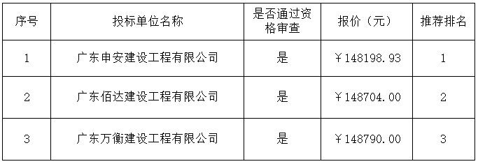 報(bào)價(jià)結(jié)果:最終詢價(jià)小組一致推薦廣東申安建設(shè)工程有限公司為成交單位,成交金額為人民幣148198.93元(大寫金額:壹拾肆萬捌仟壹佰玖拾捌元玖角叁分)。