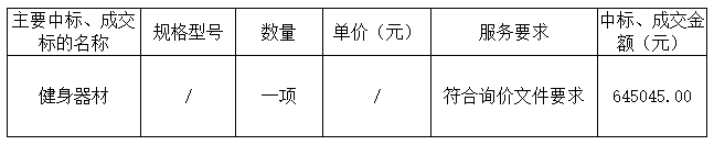 廣東業(yè)信采購招標有限公司受陽江市總工會的委托,于2023年4月28日就陽江市總工會職工文體活動中心(六樓)健身器材采購項目(項目編號:YXCG-20230420)進行詢價采購,現(xiàn)將本次采購結(jié)果公告如下:
