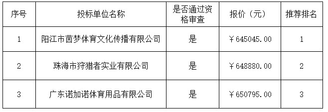 報價結(jié)果:最終詢價小組一致推薦陽江市茵夢體育文化傳播有限公司為成交單位,成交金額為人民幣645045.00元(大寫金額:陸拾肆萬伍仟零肆拾伍元整)。