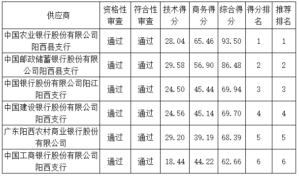 廣東業(yè)信招標(biāo)有限公司受陽西縣財政局的委托,于2023年9月5日就2023年陽西縣鄉(xiāng)鎮(zhèn)財政賬戶代理銀行采購項目(項目編號:YXZB-20230811)采用公開招標(biāo)方式進(jìn)行采購?,F(xiàn)就本次采購的中標(biāo)結(jié)果公告如下:
