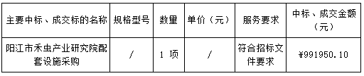 二、采購項目名稱:陽江市禾蟲產(chǎn)業(yè)研究院配套設施采購項目