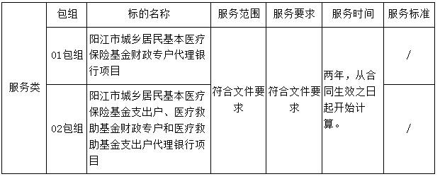 二、采購(gòu)項(xiàng)目名稱:陽江市城鄉(xiāng)居民醫(yī)療保險(xiǎn)基金和醫(yī)療救助基金代理銀行采購(gòu)項(xiàng)目(二次招標(biāo))
