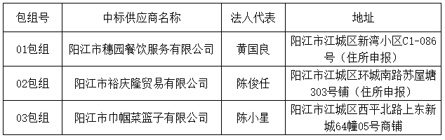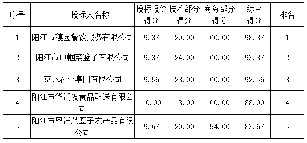 01包組:最終評(píng)標(biāo)委員會(huì)一致推薦陽(yáng)江市穗園餐飲服務(wù)有限公司為中標(biāo)單位,中標(biāo)折扣率為95.00%。