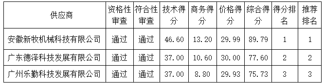 投標(biāo)結(jié)果:最終評(píng)標(biāo)委員會(huì)一致推薦安徽新牧機(jī)械科技有限公司為中標(biāo)單位,中標(biāo)金額為人民幣821250.00元,(大寫(xiě)金額:捌拾貳萬(wàn)壹仟貳佰伍拾元整)。