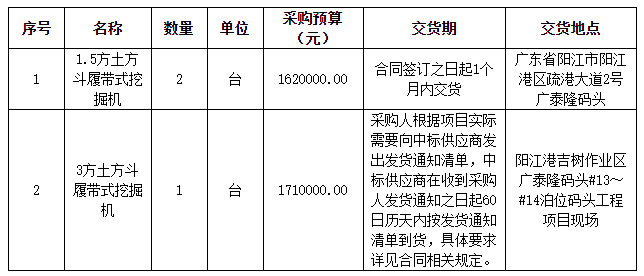 1.項目名稱:陽江市陽江港廣泰隆碼頭有限公司履帶式挖掘機采購項目