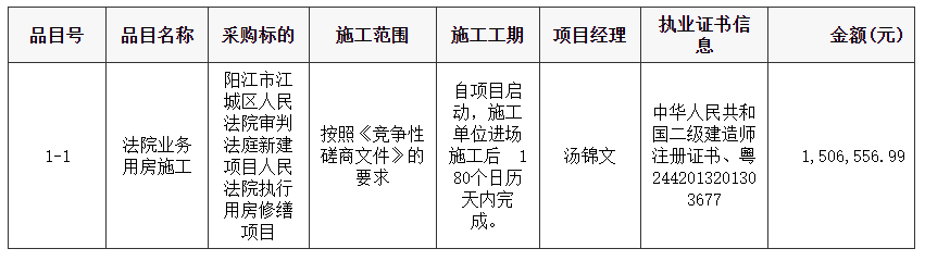合同包1(陽江市江城區(qū)人民法院審判法庭新建項目人民法院執(zhí)行用房修繕項目):