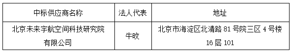 投標(biāo)結(jié)果:最終評標(biāo)委員會一致推薦 北京未來宇航空間科技研究院有限公司 為預(yù)中標(biāo)單位,中標(biāo)金額為人民幣 480000.00 元,(大寫金額: 肆拾捌萬元整 ) 。