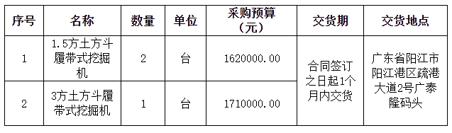 陽江市陽江港廣泰隆碼頭有限公司履帶式挖掘機(jī)采購項(xiàng)目(二次招標(biāo))