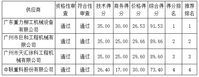 投標(biāo)結(jié)果:最終評標(biāo)委員會(huì)一致推薦廣東重力柳工機(jī)械設(shè)備有限公司為中標(biāo)單位,中標(biāo)金額為人民幣3309000.00元,(大寫金額:叁佰叁拾萬零玖仟元整)。