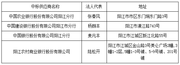 (2)中國建設(shè)銀行股份有限公司陽江市分行;