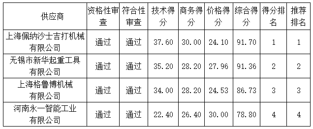 注:恩倍力(昆山)機(jī)械有限公司的投標(biāo)報價明顯低于其他通過符合性審查投標(biāo)人的報價,評標(biāo)委員會要求其現(xiàn)場提供書面說明,其說明的投標(biāo)報價只報了3臺設(shè)備的價格,報價失誤。根據(jù)《政府采購貨物和服務(wù)招標(biāo)投標(biāo)管理辦法》第六十條投標(biāo)人不能證明其報價合理性的,評標(biāo)委員會應(yīng)當(dāng)將其作為無效投標(biāo)處理。