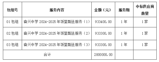 1. 項(xiàng)目名稱:奮興中學(xué)2024-2025年飯?zhí)门渌头?wù)項(xiàng)目
