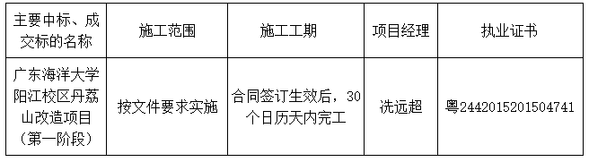 廣東業(yè)信采購招標(biāo)有限公司受 廣東海洋大學(xué)陽江校區(qū)管理辦公室 的委托,于2025年9月29日就 廣東海洋大學(xué)陽江校區(qū)丹荔山改造項(xiàng)目(第一階段)(項(xiàng)目編號(hào):YXCG-20250912)采用競(jìng)爭(zhēng)性磋商方式進(jìn)行采購?,F(xiàn)就本次采購的成交結(jié)果公告如下: