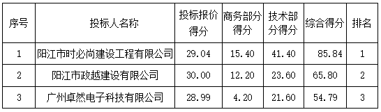 投標(biāo)結(jié)果:最終評(píng)標(biāo)委員會(huì)一致推薦 陽江市時(shí)必尚建設(shè)工程有限公司 為中標(biāo)單位,中標(biāo)金額為人民幣 333088.00 元,(大寫金額: 叁拾叁萬叁仟零捌拾捌元整 )。