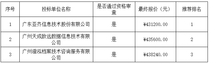 談判結(jié)果:最終談判小組一致推薦廣東亞齊信息技術(shù)股份有限公司為成交單位,成交金額為人民幣431200.00元(大寫金額:肆拾叁萬壹仟貳佰元整)。