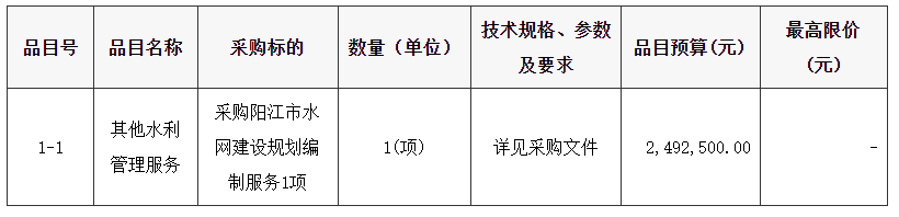合同包1(陽江市水網(wǎng)建設規(guī)劃編制):