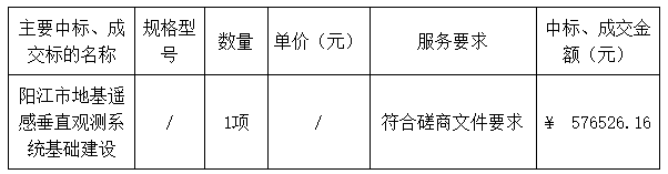 廣東業(yè)信采購招標有限公司受 廣東省陽江市氣象局 的委托,于2025年9月1日就 陽江市地基遙感垂直觀測系統(tǒng)基礎(chǔ)建設(shè)項目(項目編號:YXCG-20250820)采用競爭性磋商方式進行采購?,F(xiàn)就本次采購的成交結(jié)果公告如下: