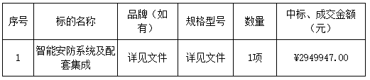 廣東業(yè)信招標有限公司受 廣東晉峰建設(shè)工程有限公司 的委托,于2025年6月25日就 廣東晉峰建設(shè)工程有限公司智能安防系統(tǒng)及配套集成項目 (項目編號:YXZB-20250617)采用公開比選方式進行采購?,F(xiàn)就本次采購的成交結(jié)果公告如下: