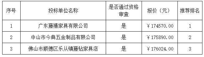 報(bào)價(jià)結(jié)果:最終詢價(jià)小組一致推薦 廣東藤禧家具有限公司 為成交單位,成交金額為人民幣 174570.00 元(大寫金額: 壹拾柒萬(wàn)肆仟伍佰柒拾元整 )。