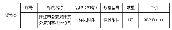 二、采購項目名稱:陽江市公安局陽東分局刑事技術(shù)設(shè)備采購項目