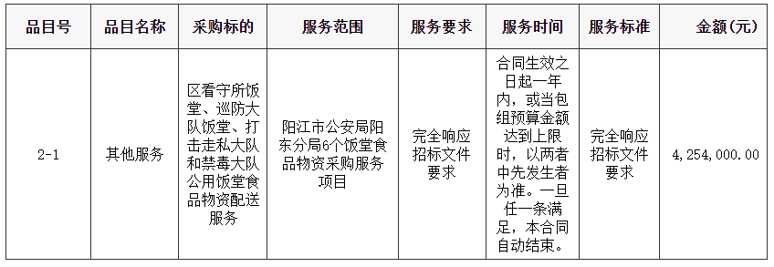 陽江市公安局陽東分局6個飯?zhí)檬称肺镔Y采購服務項目